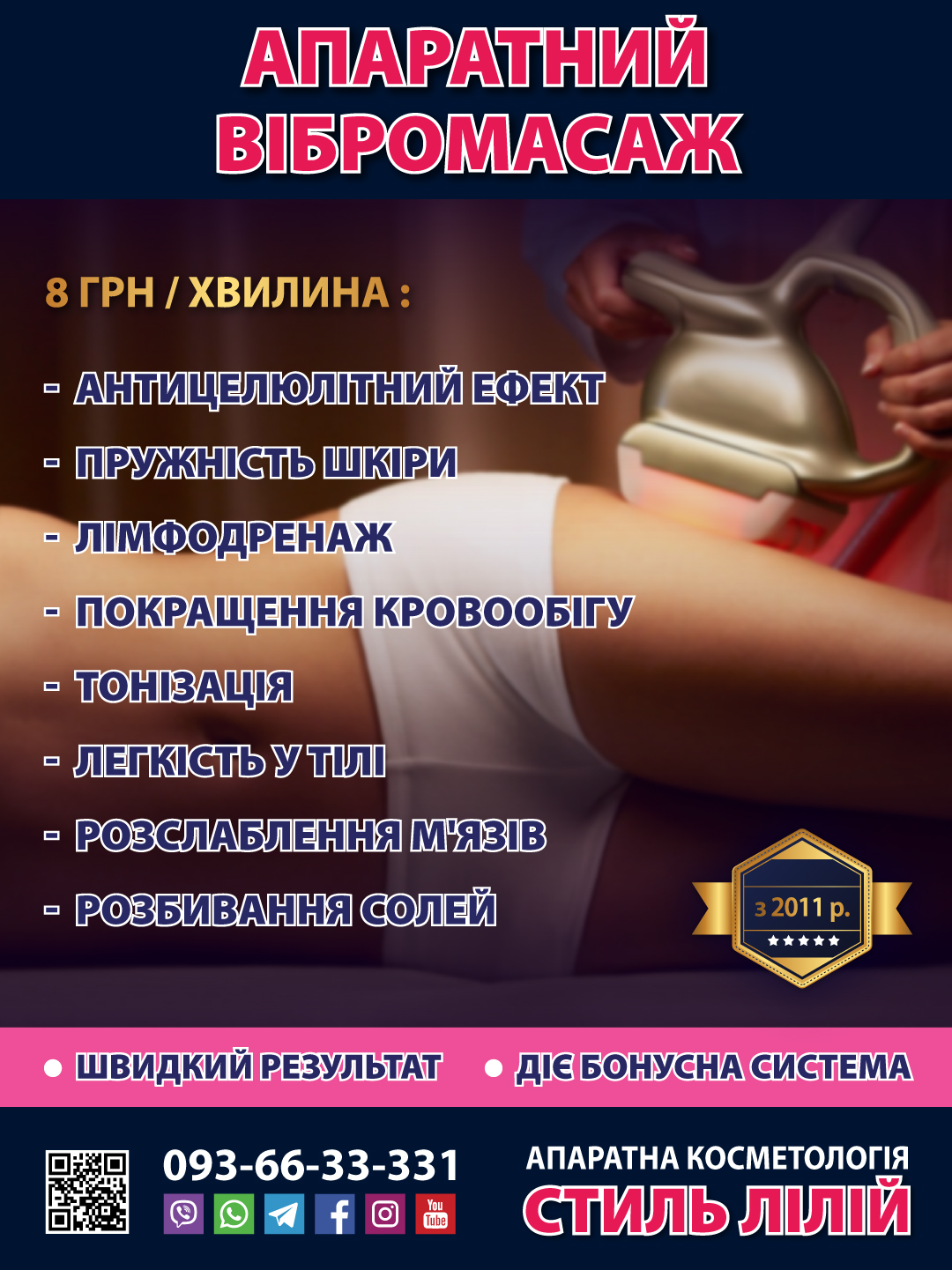 1 хвилина апаратного масажу = 8 грн.