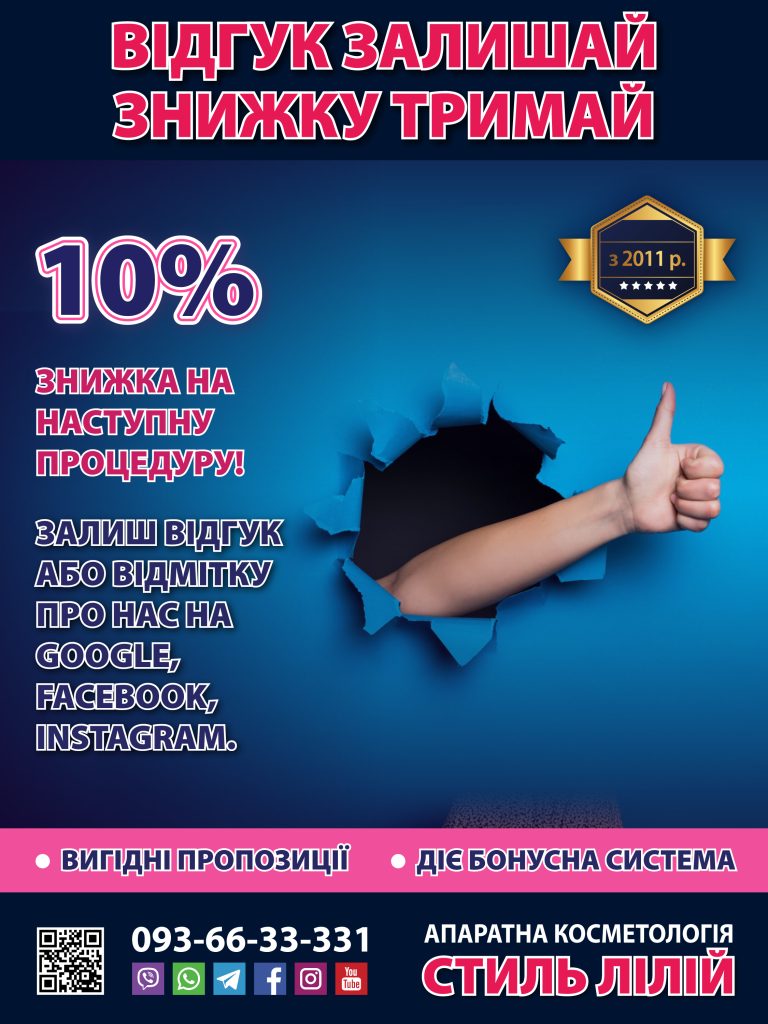 Відгук залишай – знижку тримай!