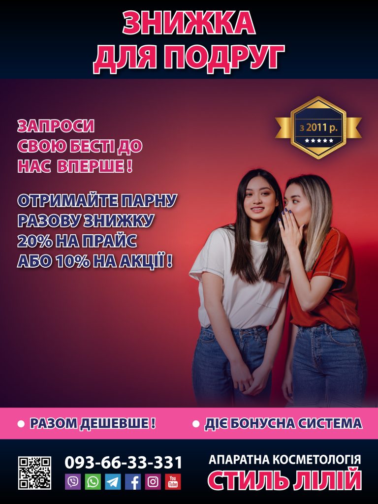Запроси нову клієнтку на наші процедури та отримайте знижку 20% кожна на стандартний прайс!